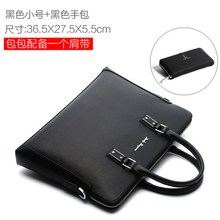 3分钟前幸运袋鼠男包商务包男士手提包公文包 - 黑色小号+黑色手包